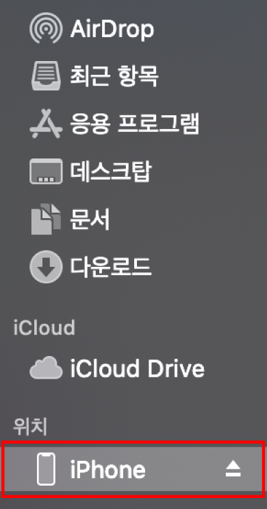 다시 Finder를 보면 <위치>에 기기 연결이 활성화 되어 있는 것을 볼 수 있다!