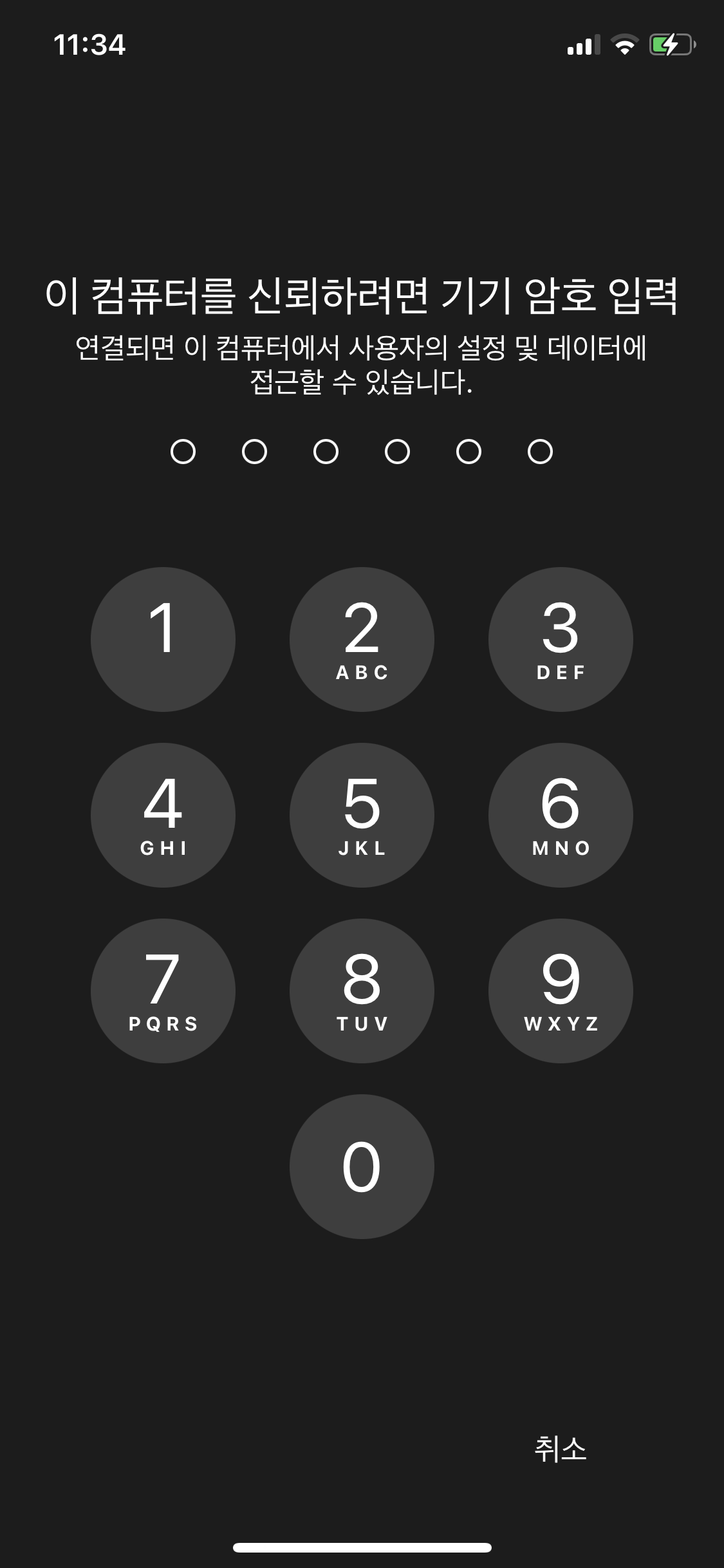신뢰를 선택하고 iPhone 기기 암호를 입력해준다.