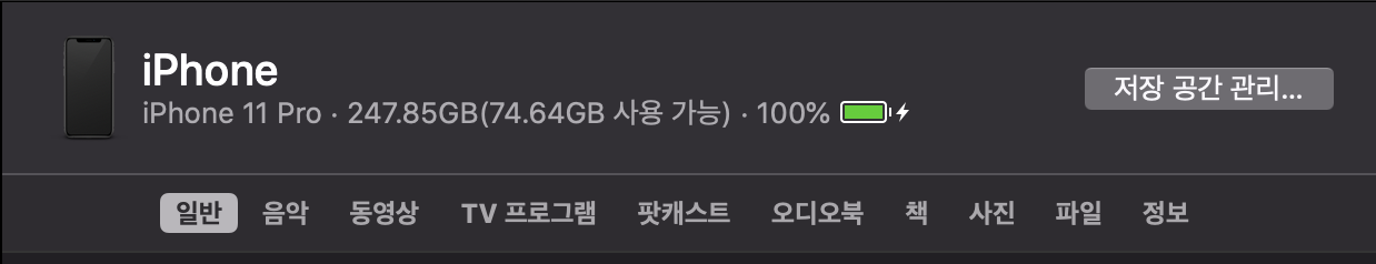 이제 Finder 좌측에서 연결된 기기를 클릭하면 다음과 같은 기기 정보를 확인할 수 있다.
