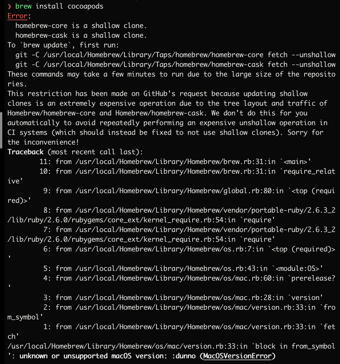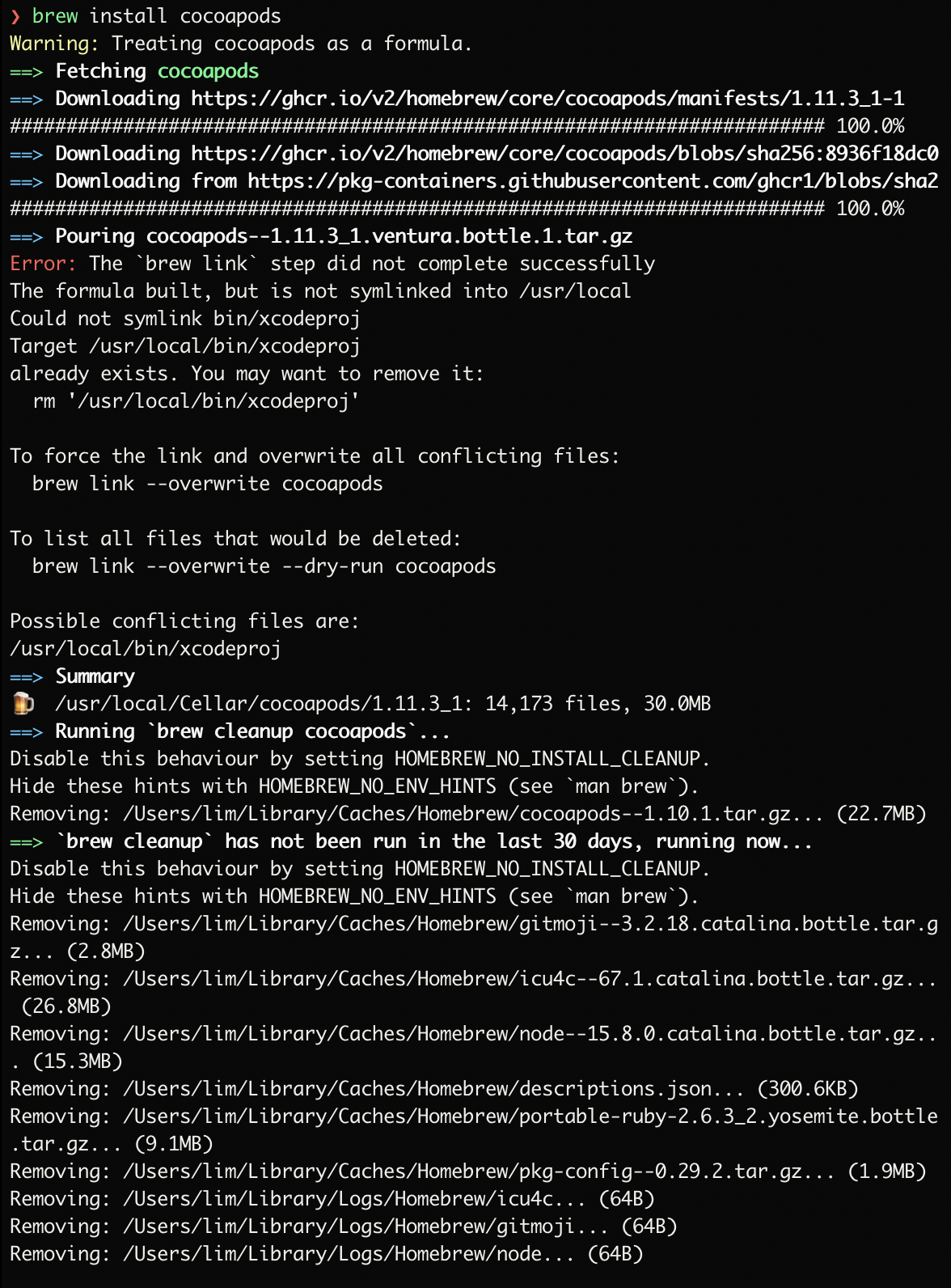 설치 한 뒤에 다시 코코아팟을 설치하려고 하니 똑같은 에러가 발생했다ㅠㅠ